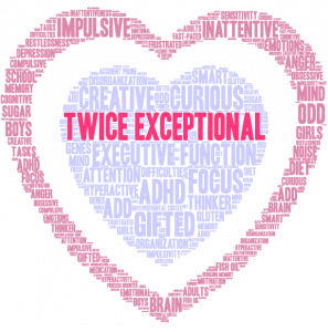 The term twice exceptional, often abbreviated as 2e, refers to gifted students who have some form of disability. These students are considered exceptional both because of their giftedness (e.g., intellectual, creative, perceptual, motor etc.) and because of their special needs (e.g., specific learning disability, neurodevelopmental disorders etc.). The disabilities are varied: dyslexia, attention deficit hyperactivity disorder, visual or auditory processing disorder, obsessive–compulsive disorder, anxiety, depression, sensory processing disorder, autism spectrum disorder, Tourette syndrome, or any other disability interfering with the student’s ability to learn effectively in a traditional environment. There is no clear-cut profile of twice-exceptional children because the nature and disabilities of twice exceptionality are so varied. This variation among twice-exceptional children makes it difficult to determine just how many of them there might be. What is even worse, many 2e children haven’t been diagnosed because the gift « covers » the disability. Parenting 2e children can be very demanding. Miona’s Talk Room’s 2eParent2forParent Support Group is created for this reason, to give parents a place to meet each other on organised meetings.
