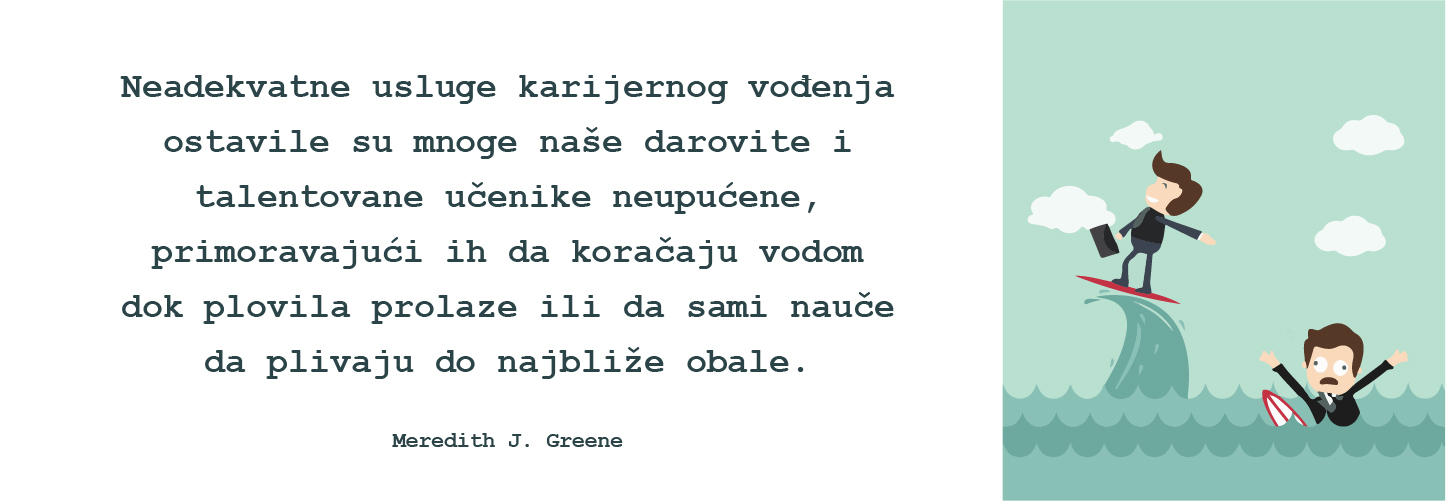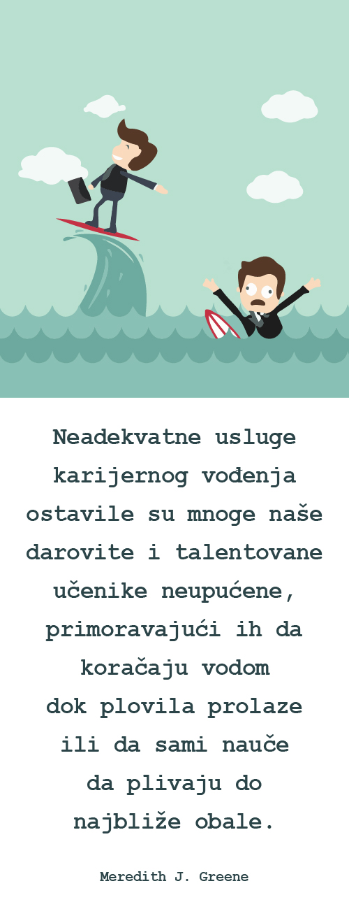 Danas, ako se savetovanje o karijeri i radi u nekim školama, one ne spremaju dete za moguće promene u budućnosti, jer većina savetnika za karijeru nema vremena da istraže jedinstveni skup potencijala koji se krije u svakom detetu.