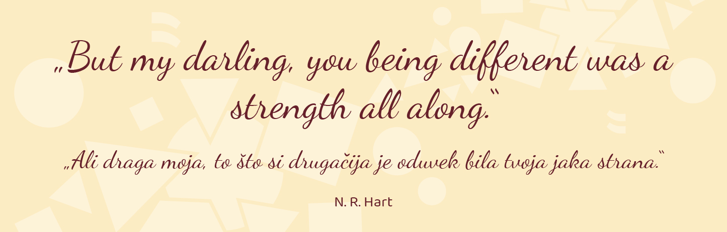 Neke sopstvene osobine, kao preosetljivost i perfekcionizam, na primer, stalno su mi posmatrane i isticane kao mane, veliko je olakšanje čuti i pročitati niz takvih primera, osvestiti te delove sopstvene ličnosti, i na kraju, ma koliko apsurdno zvučalo, ne stideti se zbog toga.“